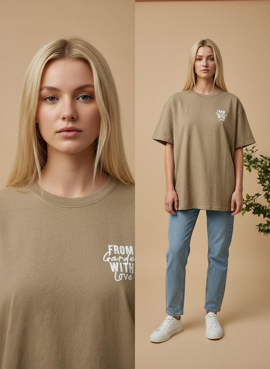 WTMG T-Shirt - "From Garden With Love" - Oversized - Beige